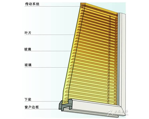中空百葉窗玻璃的原理是將鋁制的百葉簾安裝于中空玻璃的中空腔體內,通過磁力拖動,來實現中臵百葉簾的收攏、展開及調光功能,以達到自然采光與完全遮陽的作用。多數窗戶將視線放在首位,然而,窗戶的外遮陽板、遮陽簾等往往會遮擋視線,從而造成負面的影響。這一原因,水平百葉往往成為選擇,在獲取水平視線方面無可指責。其余遮陽裝臵均無法達到與其等同的效果。該技術是把外遮陽板、中空玻璃、室內窗簾合為一體,有一俱五得的功效: